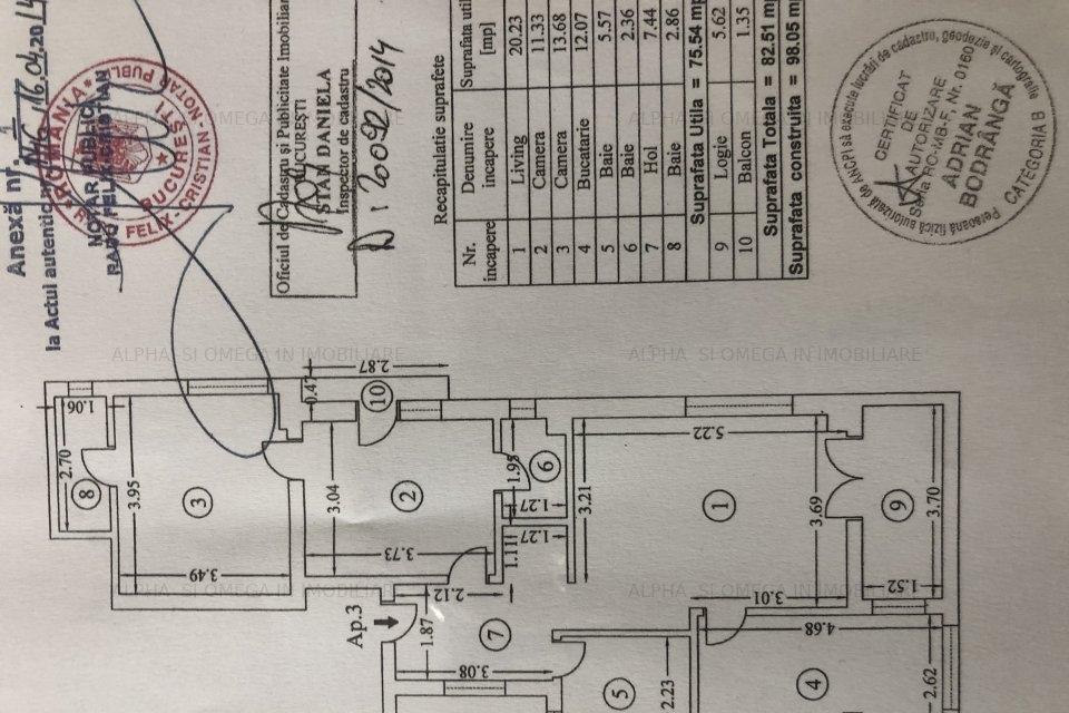 propun spre vanzare un apartament de 2 camere Universitate strada Coltei Apartamentul este situat la etajul 5/8 cf 1 bloc 1970 suprafata de 71 mp utili si 75 mp totala baia are geam gresie faianta parchet termopan cadastru intabulare