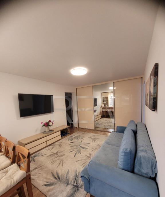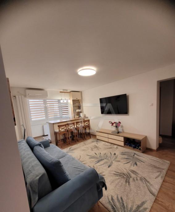 R E A Imobiliare va ofera spre vanzare un apartament cu 2 camere semidecomandat situat in zona Veteranilor pe Str Dreptatii Imobilul se afla intr un bloc de apartamente construit in anul 1981 fara risc seismic la etajul 7/8 Blocul urmeaza a fi anvelopat scara blocului este in renovare iar tevile de la subsol au fost schimbate complet anul trecut Este alcatuit din living dormitor bucatarie baie si balcon Suprafata totala este de 57 mp din care suprafata utila este de 56 mp Apartamentul a fost renovat complet instalatiile electrica/ sanitara au fost schimbate mobilier MDF boiler Se vinde partial mobilat si utilat Confortul termic este realizat cu ajutorul retelei edilitare de termoficare dar si cu ajutorul aparatului de aer conditionat In imediata apropiere se intalnesc puncte comerciale bancare farmaceutice medicale educationale si de divertisment Piata Gorjului Piata Veteranilor Carrefour Supernova la 5 minute distanta Mall Plaza Lidl 10-15 minute Acces facil la mijloacele de transport in comun 5 minute pana la statia STB si metrou Gorjului sau Lujerului Se accepta toate modalitatiile de plata Informatiile tehnice au caracter orientativ acestea fiind preluate de la proprietar Pentru mai multe detalii si vizionari ne puteti contacta telefonic specificand codul P9027 Id intern P9027