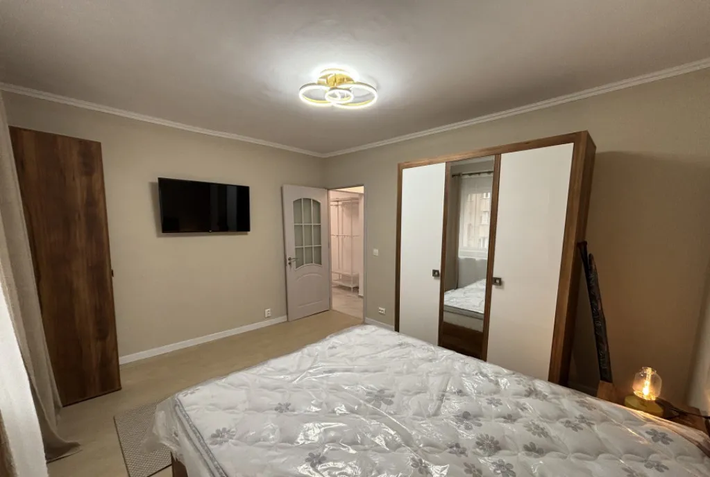 Apartamentul a fost recent renovat si este utilat cu: 2 x AC, 2 x TV, masina de spalat vase, masina de spalat haine, frigider, aragaz, hota, cuptor electric, masa de calcat, uscator rufe, aspirator, boiler.