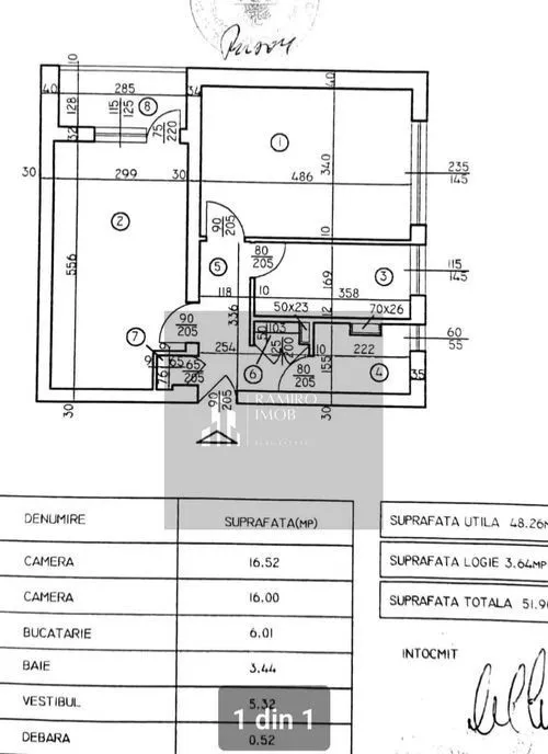 – Suprafață totală: ~52 mp