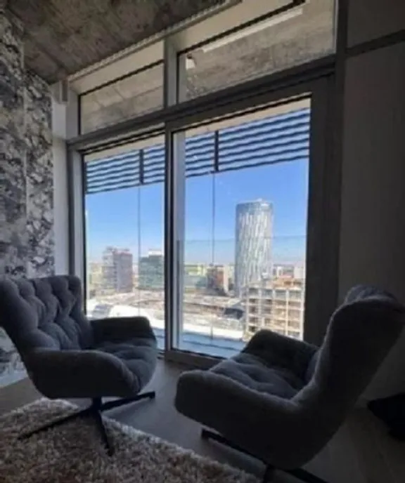 Apartamentul pozitionat la etaj 16/25 se bucura de o suprafata de 60 mp si de un loc de parcare subteran inclus in pretul chiriei.