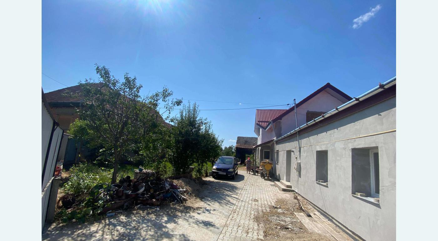 Casa la curte suprafata utila de 153 MP locuibila 145 MP anexe partial locuibile Constructia este cu fundatie inalta din beton de ciment cu armatura de fier peretii casei interior-experior sunt din boltari de ciment tavan din placa de beton Casa dispune de 2 intrari 3 dormitoare 2 sufragerii 2 bucatarii 2 holuri mansarda baie cu apa curenta din sursa proprie boiler racordata la sistemul public de canalizare garaj bolta de fier Suprata teren 1321 Mp