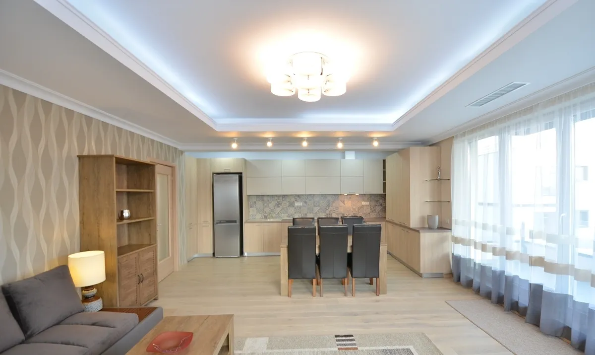 Imobilul are toate imbunatatirile, inclusiv Centrala Proprie de Apartament cu Incalzire in Pardoseala, Aer Conditionat peste tot, Masina de Spalat Vase, TV Smart, consumuri contorizate, mobilat, utilat complet. A 4-a camera se mobileaza la cerere: birou, dormitor, dressing, etc
