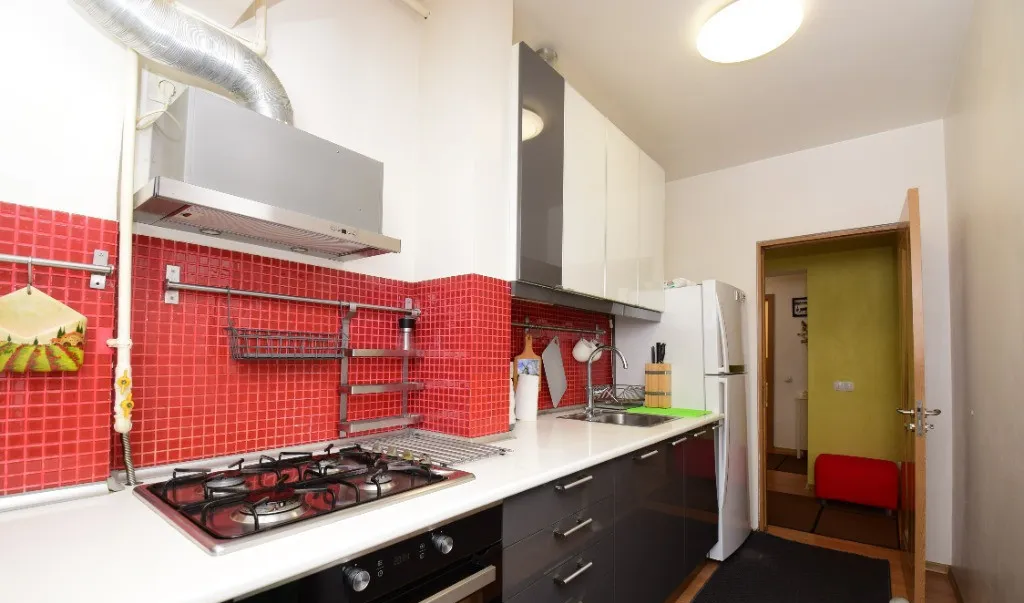 Locuinta se vinde complet mobilata si utilata, cu electrocasnice in stare buna de functionare: masina de spalat rufe, masina de spalat vase, plita, cuptor, hota, cuptor cu microunde, espressor si frigider.