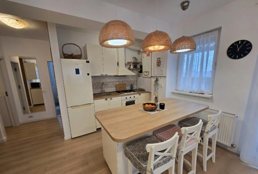 Renovarile includ parchet nou in toata casa, usi noi, plinte noi, blaturi de bucatarie schimbate, corpuri de iluminat moderne deja montate si zugravire integrala. Ferestrele mari aduc multa lumina naturala, iar intreaga locuinta se simte aerisita, deschisa si armonioasa.