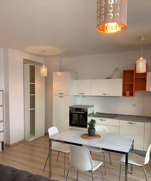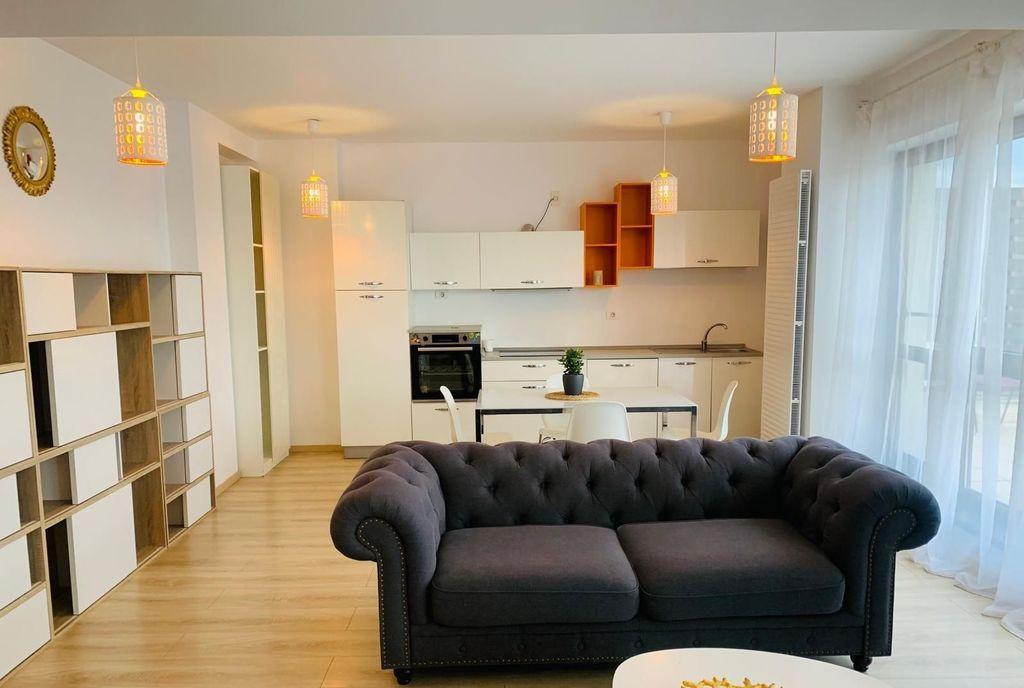 Va propunem spre vanzare un apartament cu 2 camere in ansamblul rezidential Onix North Park pozitionat in Pipera Apartamentul situat la etajul 7/11 dispune de o terasa mobilata cu masa si scaune de unde va puteti bucura de o priveliste senzationala asupra lacului Complet mobilat si utilat acest apartament de 2 camere beneficiaza de 2 bai finisate premium de mobila eleganta si de o bucatarie echipata in totalitate cu electrocasnice noi inclusiv masina de spalat vase Apartamentul se bucura de multiple spatii de depozitare si canapea extensibila Confortul termic este realizat de centrala proprie cu incalzire in pardoseala si aerul conditionat Ansamblul rezidential beneficiaza de spatii verzi alei de promenada locuri de joaca pentru copii centre Spa sala de fitness gradinita spatii comerciale supermarket paza permanenta si supraveghere video Localizare excelenta la 5 minute de Parcul Herastrau in apropiere de Mall Promenada si a birourilor si faci...