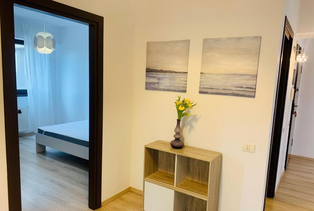 Va prezentam spre inchiriere un apartament luminos si modern de 2 camere in Aviatiei o zona linistita cu vecini civilizati Situat la etajul 6 din 8 intr-un imobil construit in 2014 apartamentul se inchiriaza mobilat si utilat complet cu mobilier si electrocasnice de inalta calitate Apartamentul cuprinde o bucatarie complet echipata un living spatios un dormitor elegant 2 bai si un balcon cu vedere impresionanta Confortul termic este asigurat de centrala proprie Loc de parcare liber in spatiu supravegheat video langa bloc Acces facil catre zone comerciale birouri si Parcul Herastrau