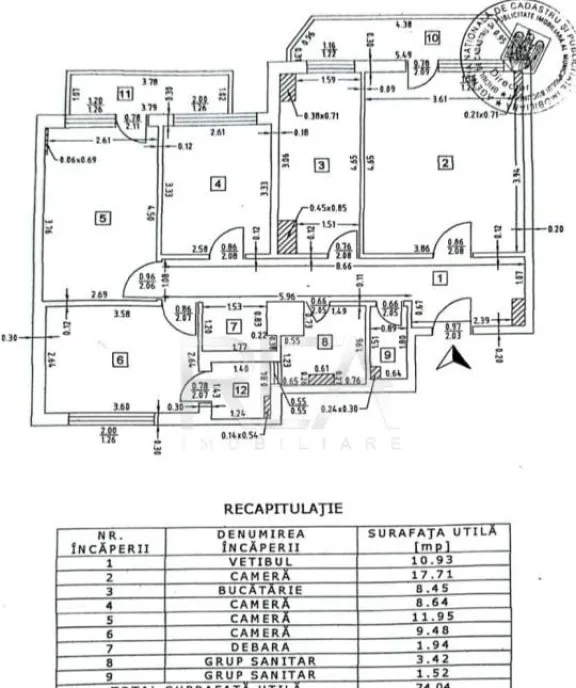 Compartimentare: living, trei dormitoare, bucătărie, doua bai și trei balcoane.