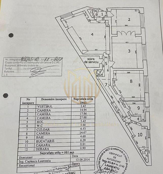 Va prezentam un apartament complet renovat instalatii sanitare si electrice noi si ultrafinisat modern in centrul Bucurestiului avand 4 camere transformat in 3 101 mp utili aflat la parterul unui imobil construit in 1930 pret 140 000 EUR