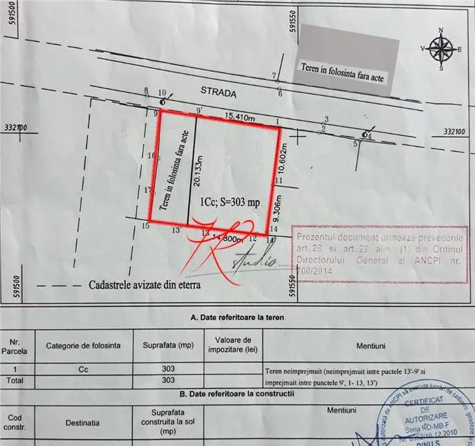 7R-3455 Teren Intravilan Construibil de vanzare in Bucuresti - Andronache, reper Str. Calmatui, avand o suprafata de 450 mp (300 mp in proprietate si 150 in folosinta dar cu posibilitatea de a intregi proprietatea foarte usor) si deschiderea de 22 ml la 1 strada.