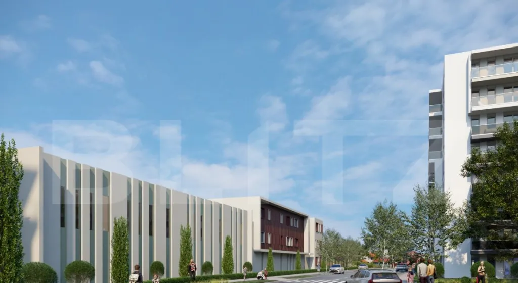 Blitz va propune sa descoperiti un nou standard de viață în zona de maxima dezvoltare a Clujului – un ansamblu rezidențial ultramodern, proiectat după cele mai recente norme NZEB (Nearly Zero Energy Building), pentru un trai sustenabil, eficient și confortabil. ???? Energie Verde & Economii pe termen lung Fiecare clădire este echipată cu panouri fotovoltaice, asigurând un consum redus de energie și respect pentru mediul înconjurător. ???? Un stil de viață echilibrat, în mijlocul naturii urbane Ansamblul integrează un parc privat generos, cu zone de relaxare, locuri de joacă și spații verzi, gândit pentru toate vârstele. Aici, liniștea naturii se îmbină armonios cu dinamismul vieții urbane. ???? Educație și confort la un pas de casă Bucură-te de acces facil la o cresă și o școală moderne, construite în interiorul complexului, oferind siguranță și confort familiilor cu copii. ???? Facilități premium * Piscină interioară pentru relaxare indiferent de sezon * Centru fitness complet echipat – wellness la tine acasă * Supermarket Lidl chiar în complex – cumpărături rapide și accesibile ????️ Conectat la tot ce contează La doar câțiva pași de Rivus Mall, cel mai nou hub comercial și de divertisment din Cluj-Napoca, cu restaurante, magazine, cinema și alte facilități urbane moderne. Predarea apartamentelor se v-a face la stadiul de semifinisat, dar se poate opta si pentru varianta finisata. Preturile parcarilor subterane incep de la 14000euro, in functie de suprafata fiecaruia. Preturile includ TVA. Te asteptam la vizionare!