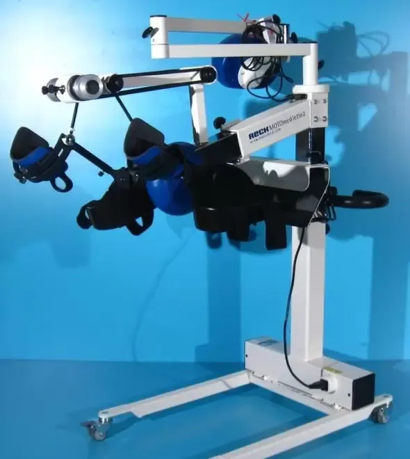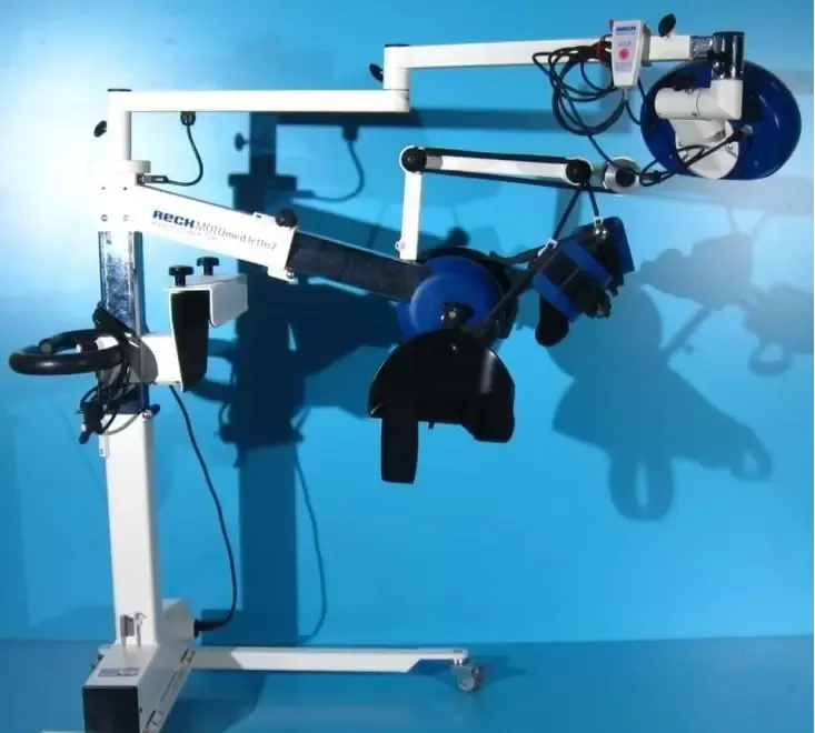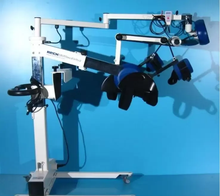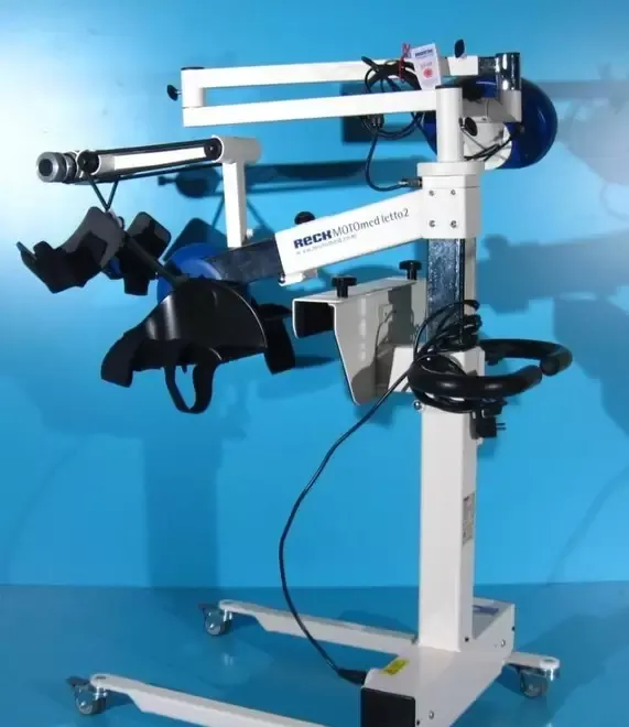 Pacientii pot folosi acest aparat intr-un mod pasiv asistat de un motor fie pe un pat de spital sau pe un scaun pentru terapie