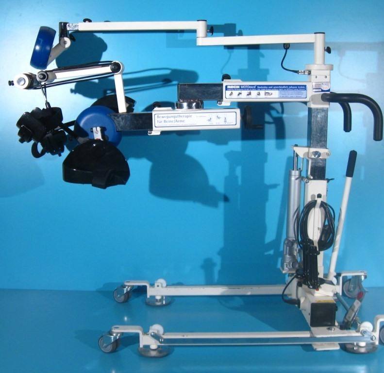 Pacientii pot folosi acest aparat intr-un mod pasiv, asistat de un motor, fie pe un pat de spital sau pe un scaun pentru terapie.