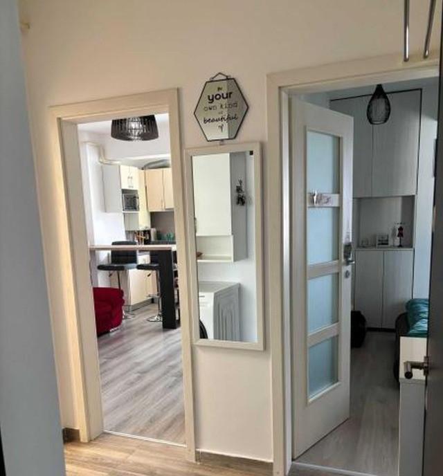 spre inchiriere apartament cu 2 camere tip studiou situat in complexul Biruintei 85 la numai 7 minute de mers pe jos de statia de metrou Berceni Pret 450 Euro/luna Apartamentul este situat la et 5/7 si este la prima inchiriere este utilat complet cu mobilier si electrocasnice noi Complexul este nou cu piscina la parterul blocurilor sunt spatii comerciale Carrefour Express Froo Bistro La Doi Pasi supermarket Auchan la doar 5 minute coafor magazine alimentare sali de fitness /SPA Restaurante Cafenea Apartamentul dispune de aer conditionat incalzire in pardoseala masina de spalat vase masina de spalat rufe plita pe gaz cuptor electric hota frigider incorporat in mobila de bucatarie 2 televizoare si internet Canapea extensibila cu lada de depozitare Pat tapitat cu spatiu de depozitare Acesta este ideal pentru o persoana sau un cuplu care cauta un apartament modern si acces rapid la metrou