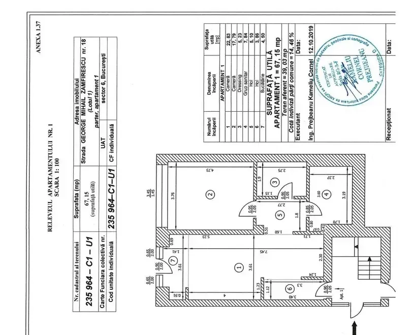 Apartamentul se afla la parter si are o suprafata totala utila de 67 15 mp