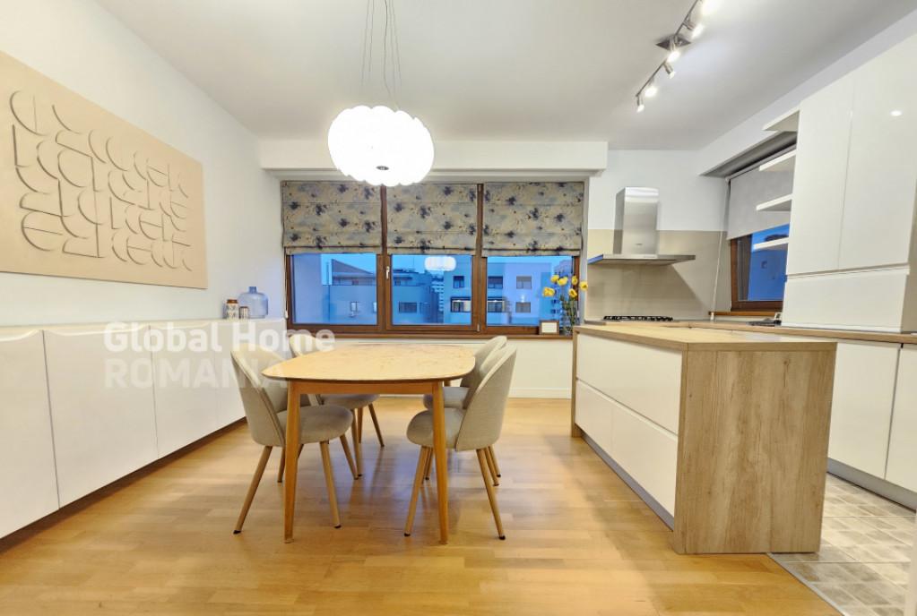 Mihai Cheosoiu Global Home Romania Real Estate Imobiliare Aviatiei Descopera confortul unui apartament modern de 3 camere spatios si luminos situat in una dintre cele mai cautate zone ale Capitalei - cartierul Aviatiei - Baneasa Perfect pentru un stil de viata urban apartamentul ofera un mix echilibrat intre eleganta functionalitate si liniste Detalii si compartimentare - Suprafata totala 110 mp 93 mp utili terasa de 17 mp - Etaj 5/6 intr-un bloc modern cu finisaje de calitate si spatii comune curate si bine intretinute - 3 camere - living generos open-space cu bucatarie 2 dormitoare 2 bai 2 debarale terasa generoasa Apartamentul se remarca printr-o atmosfera luminoasa si relaxanta datorita ferestrelor ample si orientarii sale avantajoase Mobilierul modern tonurile neutre si detaliile atent alese creeaza un ambient placut si echilibrat potrivit atat pentru o familie cat si pentru un cuplu activ Dotari si finisaje - Complet mobilat si utilat cu electrocasnice incorporate Bosch plita pe gaz cuptor cuptor cu microunde frigider masina de spalat vase masina de spalat rufe si uscator - Aer conditionat pentru confort termic pe tot parcursul anului - Rulouri electrice exterioare pentru intimitate si izolatie suplimentara - Spatii multiple de depozitare - dressing generos camara separata si zona de depozitare la intrare - Terasa spatioasa cu acces din living - ideala pentru relaxare sau socializare Beneficii suplimentare - Acces facil catre principalele puncte de interes din nordul orasului Promenada Mall Parcul Herastrau zona de birouri din Pipera si Baneasa - Ideal pentru inchiriere pe termen lung - Bloc modern cu acces securizat si vecinatate selecta Proprietatea se inchiriaza imperuna cu 1 loc de parcare subteran inclus in pretul chiriei Disponibil pentru vizionare si mutare imediata Global Home Romania este o firma in schimbare de jocuri pe piata imobiliara din Romania ce se afla intr-o expansiune rapida Modelul personalizat avand la baza tehnologia digitala inteligenta artificala si interactiune umana alaturi de colaboratorii firmei inspira constant incredere Avand o abordare de marketing profesionala si indrazneta a ridicat atentia asupra modului in care oamenii se gandesc la imobiliare in Romania Global Home Romania companie imobiliara infiintata in 2020 ce continua sa se dezvolte cu succes in domeniu reusind sa atraga constant parteneri si colaboratori de incredere Cu sediul in Bucuresti Global Home Romania a aparut ca o firma imobiliara de incredere ce isi propune constant sa livreze servicii de calitate Misiunea Global Home Romania in piata imobiliara este aceea de a stabili un raport solid bazat pe incredere si profesionalism intre reprezentantii nostri imobiliari bine informati impreuna cu toti clientii si colaboratorii companiei Id intern P15607