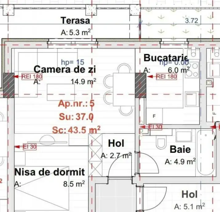 Apartamentul este complet finisat și mobilat, având o suprafață utilă de 37 mp, compartimentată eficient astfel: bucătărie închisă, cameră, baie și balcon. Este amplasat la parterul unui imobil cu 7 etaje.