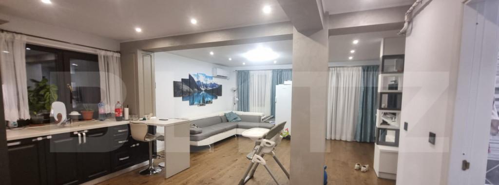 Blitz va prezinta o oportunitate unica de a trai intr-un bloc rezidential inovator echipat cu panouri solare oferind astfel o experienta de locuit eco-friendly si eficienta energetic Suprafata utila a acestuia este de 50 mp plus 6 mp balcon iar compartimentarea este gandita astfel un hol un living open space cu bucatarie 1 dressing 1 dormitor si o baie cu cada si geam Se preda finisat la cheie Acesta este situat la etajul 1 intr-un imobil in regim P-2-M Constructie Porotherm de 30cm izolatie cu polistiren grafitat gresie faianta calitate premium geamuri termopan Trocal usi interior Portadoor usa metalica incalzire in pardoseala 4kw per apartament fiecare incapere inclusiv in baie are termostat video interfon aer conditionat Beneficiaza de un loc de parcare Caracteristici Principale Energie Sustenabila Blocul este dotat cu panouri solare care transforma energia solara in electricitate contribuind astfel la reducerea amprentei de carbon si la eficienta energ...