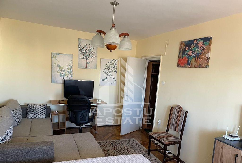 APOSTU ESTATE va propune spre inchiriere un apartament cu 1 camera situat intr-o zona linistita si bine conectata la principalele puncte de interes din Timisoara - zona Complex Studentesc Apartamentul are o suprafata utila de 35 mp si este compartimentat eficient oferind un spatiu ideal pentru un stil de viata practic si confortabil Se inchiriaza complet mobilat si utilat Compartimentare Dormitor primitor Bucatarie complet echipata cu loc de luat masa Baie dotata cu toate cele necesare Localizarea in zona Complexului Studentesc ofera numeroase avantaje acces rapid la mijloace de transport in comun supermarketuri farmacii scoli si alte facilitati urbane In acelasi timp zona este linistita si sigura perfecta pentru un trai relaxat Apartamentul este potrivit cuplurilor studentilor si familiilor Chiria lunara este de 300 EUR iar garantia solicitata este de 500 EUR Daca esti in cautarea unui apartament functional si bine amplasat in Timisoara te invitam cu drag la o vizionare ID intern CP2799651