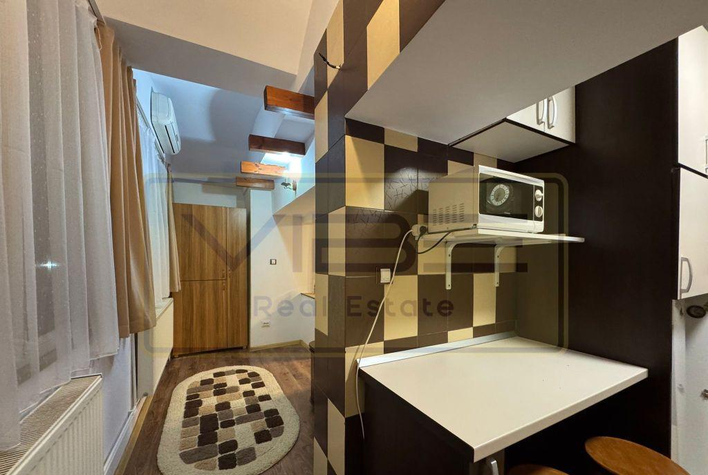 Disponibil cu mutare imediata Agentia VIBE REAL ESTATE va ofera spre inchiriere un apartament cu 1 camera situat intr-un imobil dotat cu ascensor modern din zona centrala 5 minute de Gara principala Iasi - Mc Donald s si la doar 10 minute de mers pe jos fata de Piata Unirii -Grand Hotel Traian Apartamentul este curat renovat dispune de mobilier cu multiple spatii de depozitare si bucatarie utilata loc pentru servit masa Camera este dotata cu pat matrimonial birou biblioteca TV si balcon tip logie cu view panoramic asupra zonei Arcu-Scoala Agatha Barsescu Confortul termic este asigurat de incalzire cu centrala termica proprie termostat de ambient respectiv unitate AC pentru sezonul de vara Baia cu geam pentru ventilatie naturla este dotata cu cabina de dus obiecte sanitare noi si masina de spalat Pretul chiriei lunare este de 350Euro se solicita garantie 350Euro/returnabila la finalul contractului ce se va incheia pe o perioada de minim 12 luni Se percepe comision la agentie pentru serviciul imobiliar 350Euro NO PET FRENDLY Pentru detalii va stam la dispozitie telefonic iar pentru vizionarea proprietatii este necesara o programare in prealabil Senior Broker imobiliar Ciprian-Bogdan