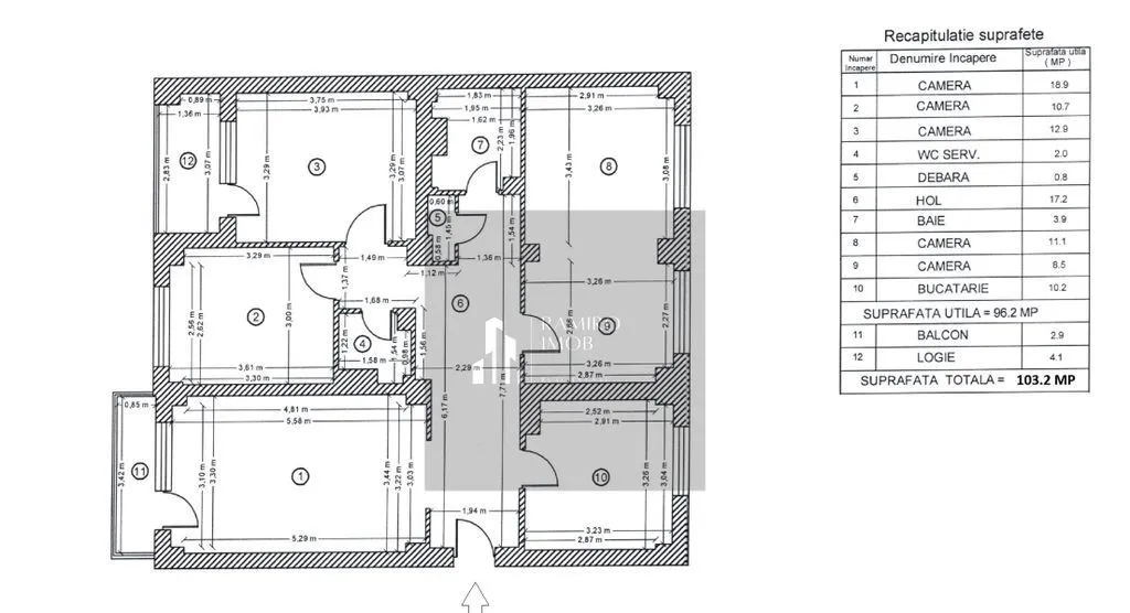 - suprafata utila 104 mp, 4 camere (modificat din 5, cadastru nou), 1 balcon si 1 logie, 2 bai