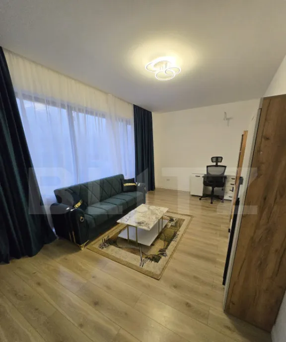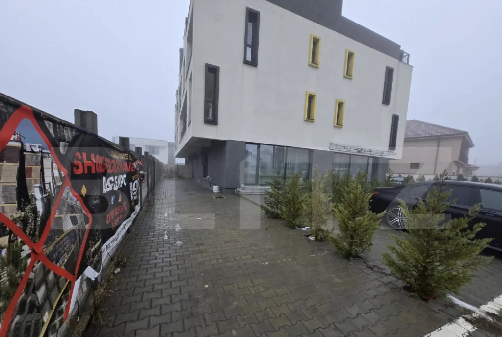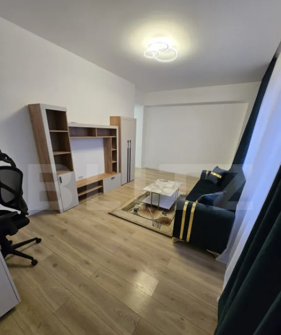 Apartamentul este situat la parterul unui bloc recent construit si beneficiaza de o curte proprie si loc de parcare, cu suprafata de 104 mp. Apartamentul beneficiaza de o campartimentare decomandata, accesul in toata incaperile facanduse dintr un hol. Apartamentul nu a fost locuit niciodata, se inchiriaza utilat si mobilat, electrocasnicele, electronicele si mobilierul fiind noi. Incalzirea se face cu ajutorul unei centrale pe gaz. Orientarea este sud-estica ceea ce face sa beneficiezi de lumina naturala pe aproape toata perioada zilei. Este aproape de mijloace de transport in comun, scoala, magazine si parc.