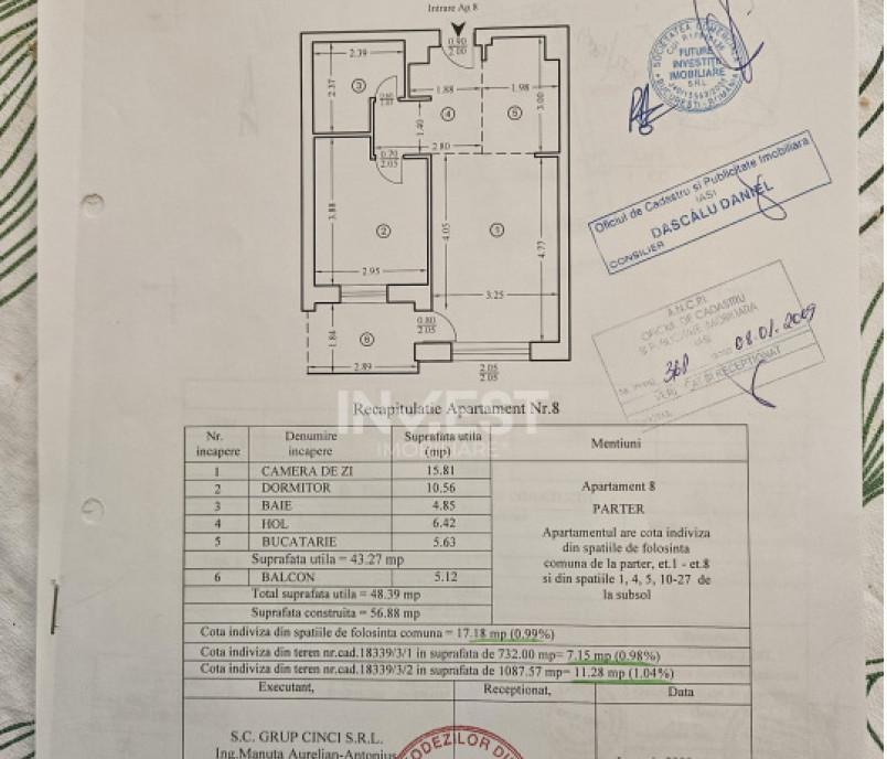 Agentia Invest Imobiliare va propune spre achizitie un apartament cu 2 camere decomandate in zona Tatarasi Imobilul este situat la Parter intr-un bloc cu 10 etaje fara risc seismic cu o vedere spre spatiul verde al complexului avand o suprafata utila de 56 88 mp Cu acces rapid la mijloacele de transport scoli locuri de joaca magazine spatii verzi Apartamentul beneficiaza de geamuri termopan parchet gresie faianta Se vinde complet mobilat si utilat Pret 90 000 euro Se accepta orice modalitate de plata pentru detalii si vizionari nu ezitati sa ma contactati la numarul de telefon 0744 288 612 Id intern P8388