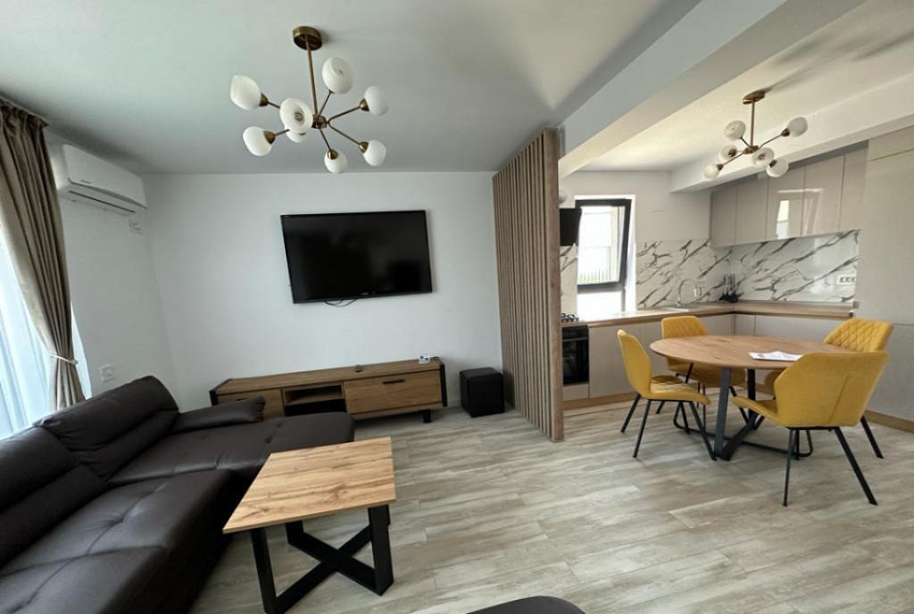 Apartament modern 2 camere bloc nou terasa loc de parcare Domina Imobiliare va prezinta spre vanzare un apartament modern cu 2 camere situat in ansamblul Unirii Residence strada Unirii - zona Parc Coloana Infinitului O locuinta luminoasa si confortabila ideala pentru cei care cauta eleganta si functionalitate Detalii generale Etaj 2/2 An constructie 2021 Suprafata utila 48 mp Terasa 108 mp Compartimentare interioara Hol de acces prevazut cu spatii de depozitare Living open-space cu bucatarie mobilata si utilata Dormitor elegant Baie moderna Dotari si finisaje Tamplarie PVC cu geam termopan Centrala termica proprie incalzire in pardoseala Aer conditionat Usa metalica la intrare Parchet laminat gresie si faianta de calitate Interfon camere de supraveghere pentru siguranta Apartamentul se vinde mobilat si utilat complet astfel incat te poti muta imediat fara griji In pret este inclus si un loc de parcare Vrei sa vezi mai multe oferte similare Ne poti contacta la numarul de telefon 0737 800 000 sau pe domina ro ID/COD OFERTA 1176 Id intern P1176