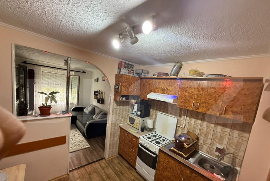 Blitz prezinta un apartament cu 2 camere situat intr-o zona linistita si practica ideal pentru familii sau cupluri Suprafata utila este de 47 mp iar compartimentarea include doua camere o bucatarie si o baie bucataria comunicand cu una dintre camere printr-o bolta eleganta Apartamentul beneficiaza de un garaj inchis si acoperit precum si de un loc de parcare acoperit completand facilitatile cu o pivnita si un balcon comun pe etaj Bucataria ramane mobilata si utilata cu frigider aragaz cuptor cu microunde si un televizor mic incorporat iar geamurile sunt termopan PVC cu jaluzele exterioare pentru confort si izolare Incalzirea se realizeaza prin centrala proprie pe gaz recent schimbata si aflata in garantie cu calorifere in camere si baie si incalzire in pardoseala in bucatarie Apartamentul nu dispune de aer conditionat oferind totusi o locuinta moderna confortabila si cu toate utilitatile esentiale Cod oferta / ID BLITZ P153473 Id intern P153473