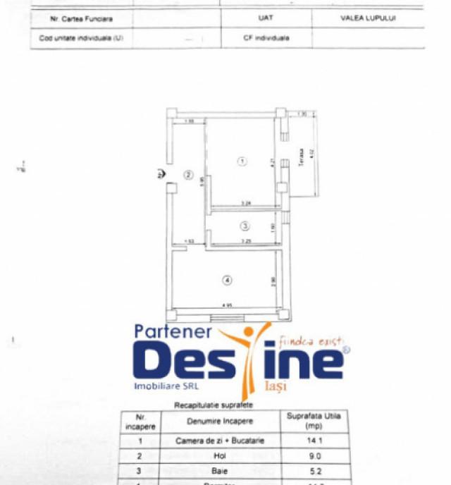 EXCLUSIVITATE COMISION ZERO DESTINE IMOBILIARE va prezinta spre vanzare Apartament 2 camere model OPEN SPACE Valea Lupului Pret 77000 EURuro Negociabil Detalii si informatii utile Imobil construit in anul 2020 Suprafata utila totala de 48 mp Etaj - PARTER INALT - imobil cu 4 etaje Avantajele locuintei - CENTRALA TERMICA - AER CONDITIONAT - Terasa intabulata - LOC DE PARCARE - Supraveghere video 24/7 - Tamplarie PVC cu geam termopan - Acces securizat cu bariera accesata prin telecomanda Apartamentul face parte dintr-un complex nou cu toate facilitatile in zona gradinita cresa scoala spatii comerciale parcuri si spatii de joaca pentru copii diverse magazine si farmacii Imobilul se afla la doar 5 minute de mers pe jos pana la statia CTP pentru mijloace de transport in comun IMPORTANT >>> Aceasta proprietate se poate fi creditata iar broker-ul nostru este aici pentru a facilita acest proces pe tot parcursul sau Fara costuri...