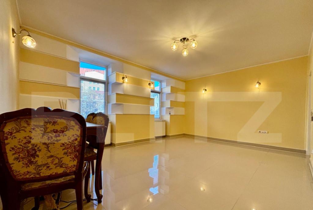 Blitz va propune spre vanzare un apartament deosebit situat chiar in inima orasului Cluj-Napoca in zona 0 intr-o cladire istorica plina de farmec si personalitate Detalii tehnice si compartimentare Suprafata utila 53 50 mp cu gradina comuna Apartament decomandat cu tavane inalte ce ofera o senzatie de spatiu si eleganta Configuratie actuala 2 camere spatioase 1 baie hol generos bucatarie si o gradina comuna Recent renovat centrala proprie cu incalzire in pardoseala dar si cu calorifere pompa de ventilatie la baie izolat interior Utilitati apartamentul este racordat la toate utilitatile Atuuri si localizare Pozitionat intr-o zona centrala exclusivista aproape de toate punctele de interes ale orasului Cladire istorica ce pastreaza sarmul arhitecturii de epoca Oportunitate excelenta atat pentru locuinta de familie cat si pentru birou cabinet sau investitie inchiriere in regim clasic sau hotelier O proprietate unica pentru cei care isi doresc sa locuiasca sau sa investeasca in centrul istoric al Clujului intr-un apartament spatios elegant si recent renovat Va asteptam sa vizionati acest apartament in zona buna si promitem ca nu o sa fiti dezamagiti Cod oferta / ID BLITZ P155338 Id intern P155338