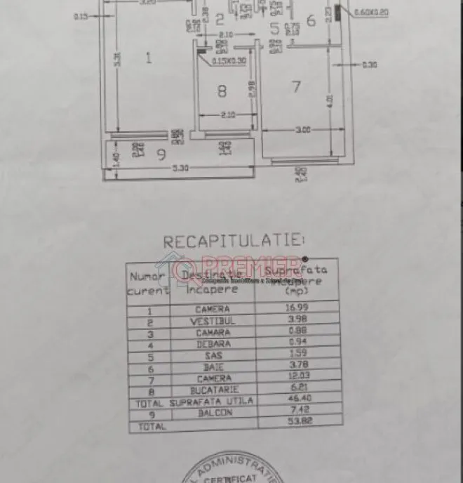 Suprafață utilă totală: 53,82 mp