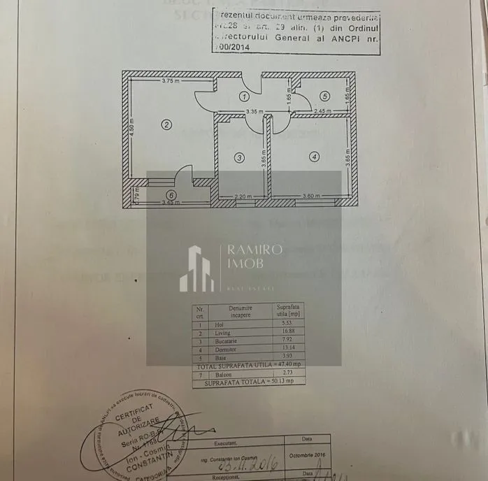-suprafata totala 50,13 mp