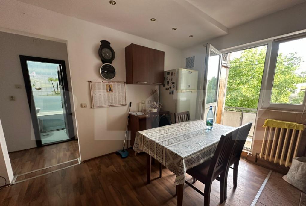 Blitz va ofera spre inchiriere un apartament spatios cu 2 camere ideal pentru un cuplu sau o familie tanara situat intr-o zona linistita si bine conectata la punctele de interes ale orasului Apartamentul este complet mobilat si dotat cu toate echipamentele necesare pentru un nivel ridicat de confort Detalii apartament 2 camere luminoase 1 bucatarie generoasa cu spatiu suficient pentru servirea mesei pentru 6 persoane 1 camara utila pentru depozitare 1 baie cu fereastra - aerisire naturala 1 hol 1 balcon inchis Pod izolat termic cu vata minerala 10 15 cm Dotari si avantaje Aer conditionat Centrala termica proprie cu termostat Wi-Fi Masina de spalat vase Masina de spalat rufe uscator de rufe Ferestre cu geam termopan cu 3 randuri de sticla 6 4 6 mm Pardoseala parchet din lemn reconditionat in camere gresie ceramica in restul spatiilor Beneficii ale zonei Statie de autobuz chiar in fata blocului Parcare libera pe strada adiacenta Mag...