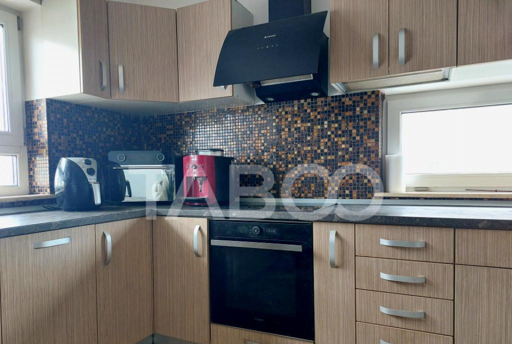 Apartament 3 camere de vanzare semidecomandat 70 mp zona Turnisor Sibiu Avantaje majore ale acestui apartament bull 2 locuri de parcare in CF bull Balcon bull Termostat in fiecare camera bull Incalzirea in pardoseala bull Mobila pe comanda toate electrocasinicele sunt incorporate nbsp TABOO Imobiliare propune un apartament de vanzare cu 3 camere semidecomandat situat in localitatea Sibiu zona Turnisor aflat la etajul parter intr -un imobil tip bloc cu regim de inaltime pe Parter 2 Etaje anul constructiei 2000 structura caramida Suprafata utila de 70 mp balcon de 5 mp Imobilul dispune de o curte comuna si un parc pentru copii nbsp Apartamentul este structurat astfel bull Hol bull Bucatarie bull Baie bull Living cu balcon bull 2 dormitoare bull Hol intermediar Finisajele interioare sunt moderne bull Usa intrare metal bull Usi interioare lemn bull Tamplarie ferestre pvc termopan bul...