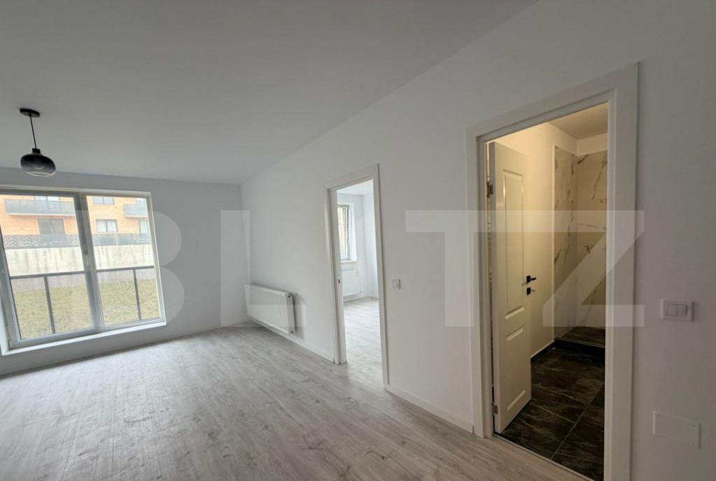 Blitz va propune spre vanzare un apartament intr-o zona nou dezvoltata in zona Somesului din Floresti Compartimentarea modern gandita este urmatoarea hol living bucatarie open space 1 dormitor baie si balcon Apartamentul este pozitionat la etajul 1 intr-un bloc cu regim de inaltime D P 4E ER Se preda la stadiul de finisat in felul urmator - peretii vor fi tencuiti gletuiti si vopsiti cu lavabila alba - pardoselile vor fi predate cu sapa semiuscata executata peste care se va aplica gresie sau parchet dupa caz - geamuri termopan cu sticla tripan cu usi de acces pe balcon - usa de intrare si usile din interiorul apartamentelor vor fi montate - instalatiile interioare vor fi trase pe pozitii electrice sanitare gaz - baile vor fi echipate cu instalatii si obiecte sanitare respectiv vas WC lavoar si bateriile aferente - instalatiile electrice executate panou doze si intrerupatoare - sistem de incalzire in pardoseala centrala termica in condensare...