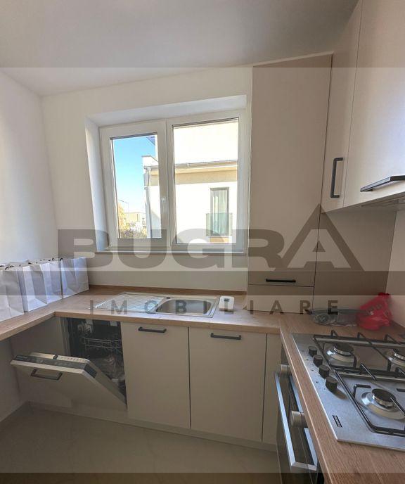 Se inchiriaza COMPLET mobilat si utilat la cerere Bugra Imobiliare va ofera spre inchiriere un apartament PET-FRIENDLY de 2 camere situat in cartierul Borhanci intr-un complex rezidential la 2 minute de magazine si aproape de statile de transport in comun Apartamentul este pozitionat la parterul unui imobil nou cu 3 nivele si dispune de o suprafata utila de 60 mp Compartimentarea este una moderna decomandata si dispusa astfel living bucatarie dormitor baie gradina de 60 mp Apartamentul dispunde de masina de spalat vase si haine Disponibil imediat Te asteptam la vizionare