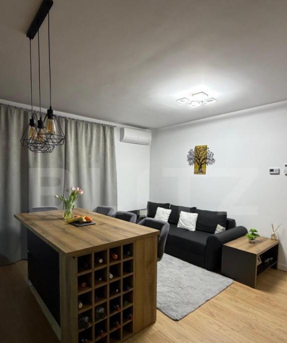 Blitz va prezinta un apartament cu 2 camere situat in Beta Residence Chinteni la doar 8 minute cu masina de Auchan Iris Detalii o Suprafata utila 45 mp o Terasa generoasa 23 mp o Etaj parter inalt o Compartimentare practica si moderna Dotari si beneficii o Apartament complet mobilat si utilat o Electrocasnice incluse o Frigider Beko o Masina de spalat Electrolux o Plita Electrolux o Hota o Cuptor incorporabil o Cuptor cu microunde incorporabil o Bucatarie cu insula 6 scaune o Aer conditionat o Incalzire in pardoseala o Centrala pe bloc - cheltuieli reduse o Boxa de depozitare la mansarda o Loc de parcare subteran inclus in pret Apartamentul este ideal atat pentru locuit cat si pentru investitie Merita vazut Cod oferta / ID BLITZ P161334 Id intern P161334