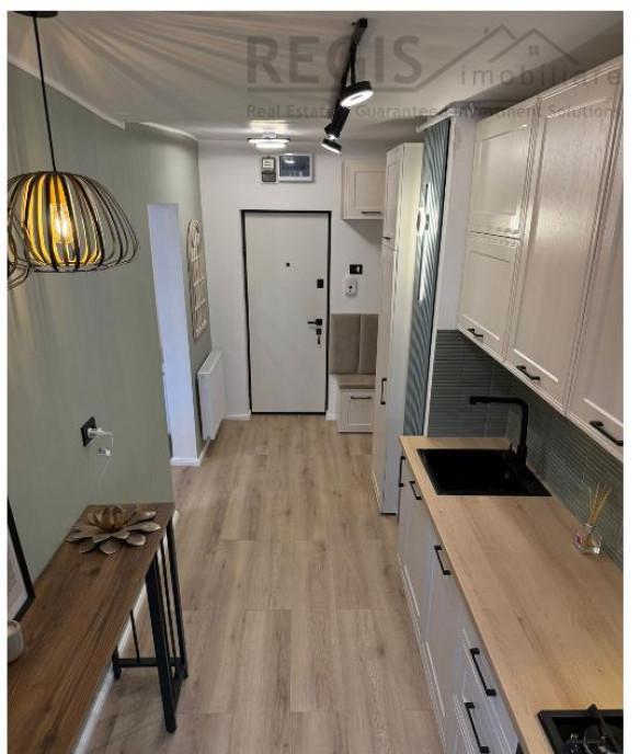 ID intern 6458 Regis Imobiliare va prezinta spre vanzare un apartament cu 2 camere situat pe strada Harmanului Apartamentul are un design contemporan aerisit cu linii curate si finisaje de calitate Livingul este spatios si luminos cu ferestre largi care lasa lumina naturala sa patrunda in interior Este amenajat cu o canapea confortabila o zona de dining minimalista si accente decorative discrete in nuante neutre Bucataria este inchisa complet utilata cu mobilier modern fronturi semilucioase electrocasnice incorporate si un blat elegant din materiale durabile Dormitorul ofera o atmosfera relaxanta cu un pat generos in culori calde menite sa creeze un spatiu intim si odihnitor si cu corpuri de iluminat discrete Baia este renovata cu materiale de calitate superioara Balconul deschis amenajat ca un spatiu de relaxare modern Apartamentul se vinde mobilat si utilat exact ca in pozele de prezentare Este acceptata si achizitionarea cu credit Comisionul agentiei este de 2 TVA din pretul de achizitionare