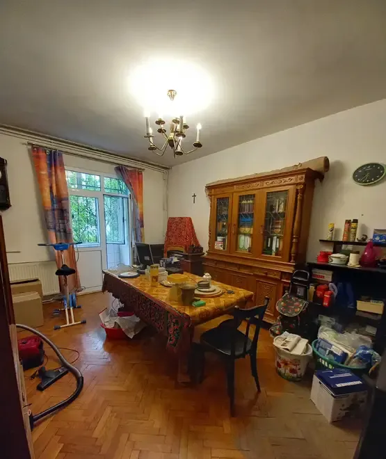 Apartament de doua camere situat in bloc de 3 etaje din caramida construit in 1950 cu suprafata de 53 17 mp si cu doua bo e la subsol de cate 6 3 mp Camerele sunt semidecomandate Apartamentul a fost de curand renovat are centrala proprie gresie faianta geamuri termopan din aluminiu tocaris din lemn usa de la intrare din metal grilaje din fier forjat balcon zidit amenajat cu spatii de depozitare Baia are cada Apartamentul e orientat est vest astfel incat sufrageria si dormitorul au orientare spre est intr-un spatiu cu gradina intre blocuri
