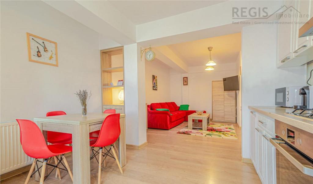 ID intern 6042 REGIS Imobiliare va propune spre inchiriere un apartament modern si luminos cu 2 camere situat pe strada Avram Iancu in complexul Schiller Residence Compartimentare camera de zi bucatarie dormitor baie hol balcon Etaj 2/3 Suprafata uitila 53 mp Se inchiriaza mobilat si utilat asa cum este prezentat in poze Dotari frigider plita pe gaz cuptor hota TV masina de spalat vase centrala proprie Detine un loc de parcare subteran Accesul in complex este privat si supravegheat 24/24 Nu se accepta animale de companie Destinat exclusiv persoanelor nefumatoare Garantie - cuantumul unei chirii lunare respecitv 585 euro Comisionul agentiei este de 50 TVA