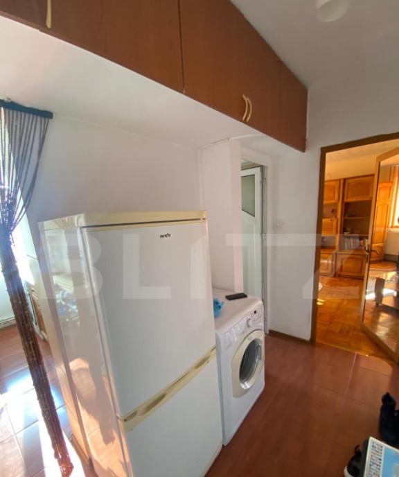 Blitz va ofera spre inchiriere un apartament spatios cu 2 camere ideal pentru un cuplu sau o familie tanara situat intr-o zona linistita si bine conectata la punctele de interes ale orasului Apartamentul este complet mobilat si dotat cu toate echipamentele necesare pentru un nivel ridicat de confort Detalii apartament 2 camere luminoase 1 bucatarie generoasa cu spatiu suficient pentru servirea mesei pentru 6 persoane 1 camara utila pentru depozitare 1 baie cu fereastra - aerisire naturala 1 hol 1 balcon inchis Pod izolat termic cu vata minerala 10 15 cm Dotari si avantaje Aer conditionat Centrala termica proprie cu termostat Wi-Fi Masina de spalat vase Masina de spalat rufe uscator de rufe Ferestre cu geam termopan cu 3 randuri de sticla 6 4 6 mm Pardoseala parchet din lemn reconditionat in camere gresie ceramica in restul spatiilor Beneficii ale zonei Statie de autobuz chiar in fata blocului Parcare libera pe strada adiacenta Mag...