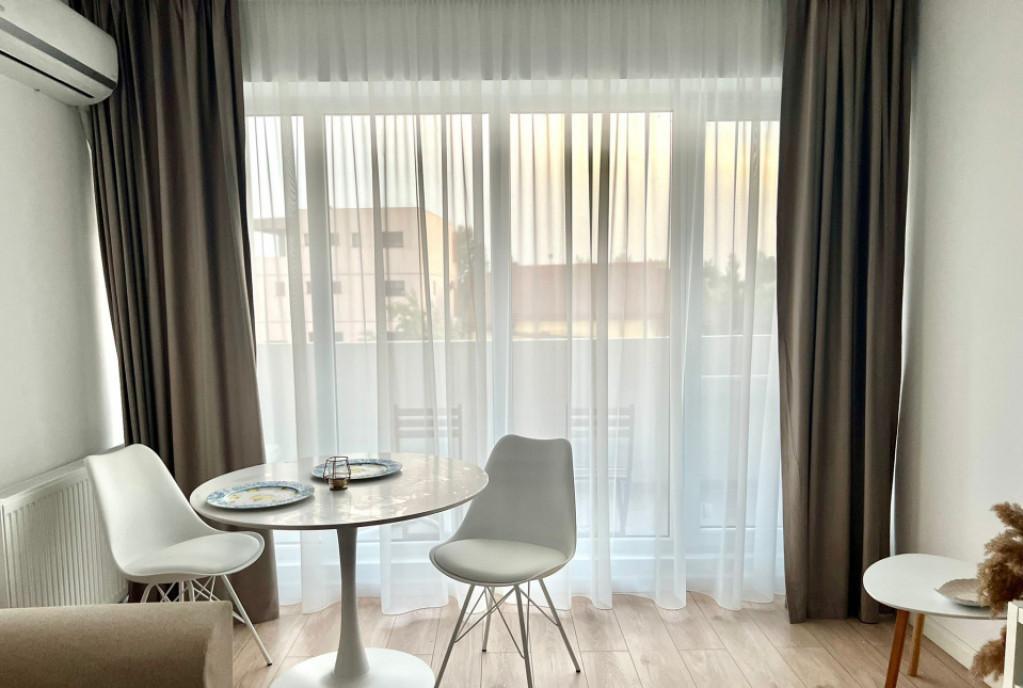 Priveliste placuta - Confort placut fonic termic design - Cheltuieli de Intretinere lunara mici - Complet Mobilat si Utilat Va prezentam un apartament cald luminos complet mobilat si utilat situat la etajul 6 din 8 disponibil pentru mutare imediata Dintre avantajele acestei proprietati - se bucura de o buna luminozitate naturala zonele vitrate fiind mari si avand totodata si o pozitie cardinala optima - orientare S-E - privelistea terasei apartamentului o consider punctul forte al proprietatii - existand acces atat din bucatarie cat si din zona de living iar view-ul oferit fiind cu adevarat deosebit indiferent de vreme sau anotimp fiind neobturat de alte cladiri inalte si orientat catre o zona de case nou construite - blocul in care se afla apartamentul este ingrijit iar ca pozitie este optim amplasat retras de zgomotul si poluarea stradala insa aproape de toate facilitatile zonei vis a vis este un parculet iar la 2-3 min de mers pe jos exista o mini-piata m...