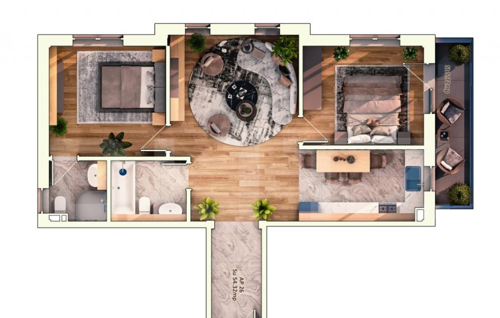 Agentia imobiliara PRIMUM are placerea de a va prezenta spre vanzare un apartament cu 3 camere situat in Chisoda intr-o zona cu multiple facilitati printre care si mijloc de trasnport in comun Apartamentul se afla la etajul 2 intr-un bloc de forma P 3E construit in anul 2020 Imobilul dispune de 69 3 mp utili balcon si este compartimentat astfel - hol de acces - living - bucatarie deschisa zona de dining - dormitor 1 - dormitor 2 - baie cu cada Apartamentul se vinde mobilat respectiv utilat conform imaginilor de prezentare Confortul termic se realizeaza prin centrala proprie cu incalzire in pardoseala biosemineu cu flacara clima Dotari - sistem de supraveghere video 24/24 acces securizat - curte interioara de 1800 mp - rastel pentru biciclete acoperit - piscina pentru adulti 18 x 7 x 1 5 respectiv o zona mai joasa pentru copii - sezlonguri si umbrele pentru relaxare dus exterior - loc de joaca pentru copii si tramb...