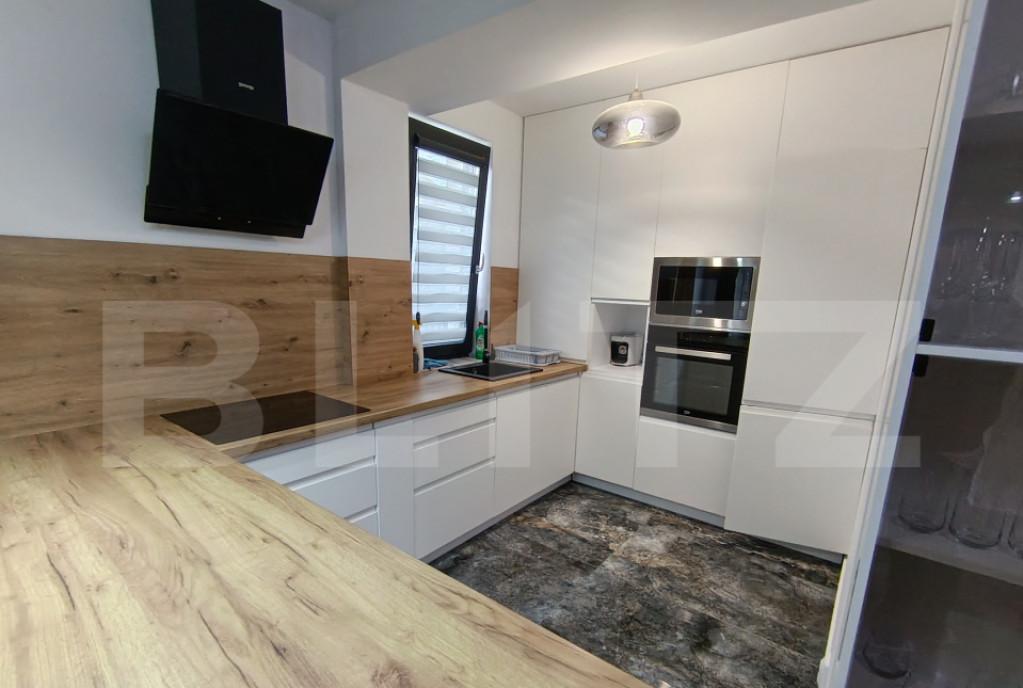 Blitz va ofera spre vanzare apartament de lux cu 3 camere extrem de spatios si luminos cu orientare sudica si vedere pe mai multe parti intr-un imobil construit in anul 2020 situat la etajul 1 intr-un bloc P 2Etaje pe fiecare etaj fiind doar cate un singur apartament reprezentand o oportunitate de locuinta moderna si confortabila Intregul design al apartamentului este modern si realizat cu multa atentie la detalii Apartamentul este compus dintr-un living spatios open space cu bacataria plus o baie de servici Doua dormitoare avnd fiecare baie proprie si terasa 12 mp Dispune de urmatoarele dotari materiale si finisaje de calitate premium - gresie faianta vopsea lavabila - structura de beton - compartimentari din caramida Porotherm - izolatie exterioara cu polistiren expandat de inalta densitate grosime 10cm - tencuieli interioare de ciment - tamplarie PVC de calitate inalta - centrala termica cu condensare - pardoseli balcoane terase si spatii comune di...