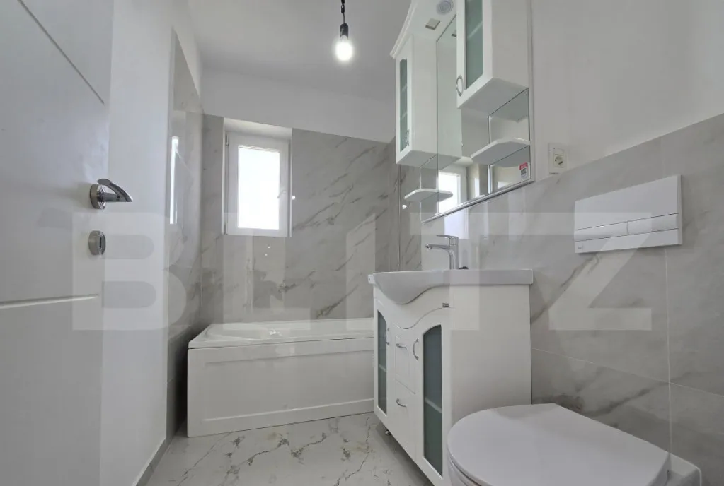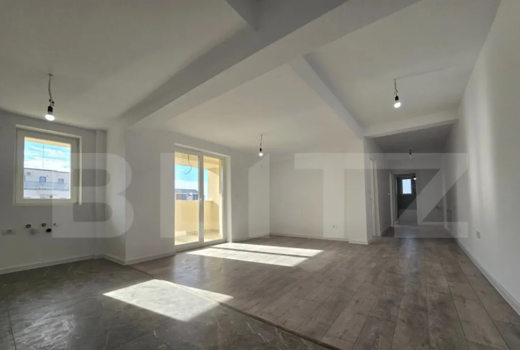 Blitz vă propune spre vânzare un apartament cu 3 camere, cu o suprafață totală de 135 mp, la parterul unui bloc nou. Apartamentul este compartimentat astfel: 2 holuri, 1 bucătărie, 1 camera de zi, 2 dormitoare, 1 baie și o grădină cu o suprafață de 72mp . În apropierea acestuia se află restaurante, cafenele, săli de sport, parcuri, aeroportul și autostrada. In cazul in care apartamentul se doreste a fi cumparat cu credit, pretul este + TVA