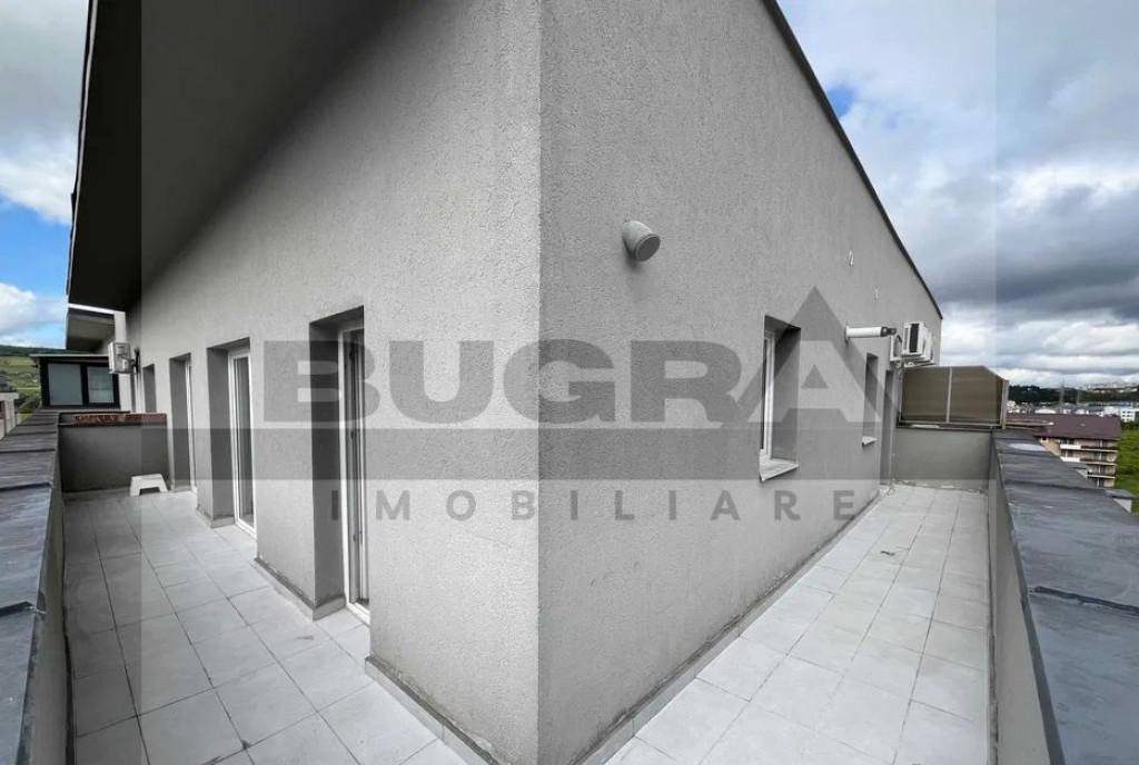 Bugra Imobiliare va propune spre inchiriere un PENTHOUSE spatios cu 4 camere situat in cartierul Andrei Muresanu intr-o zona bine conectata la mijloacele de transport in comun si centrul orasului Locuinta se afla la etajul 5 al unui imobil cu 5 niveluri si are o suprafata utila de 120 mp Compartimentarea este semidecomandata si cuprinde 3 dormitoare un living de tip open space impreuna cu bucataria 2 bai 3 balcoane si 2 terase cu acces din fiecare camera Se ofera spre inchiriere complet mobilat si utilat Penthouse-ul dispune de masina de spalat vase si 2 aparate de aer conditionat In pretul afisat este inclus si un loc de parcare subteran Va asteptam cu drag la vizionare