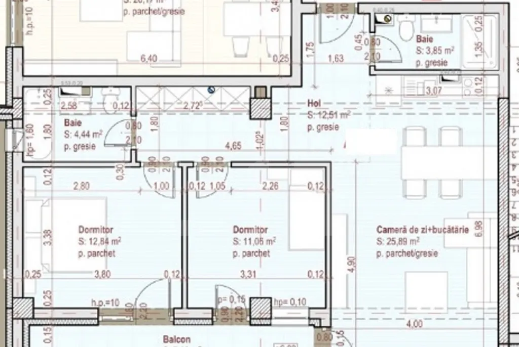 Apartamentul este compartimentat eficient: Living generos cu bucătărie open space; Două dormitoare luminoase; Două băi dintre care una cu geam; Holuri spațioase și bine gândite pentru depozitare.