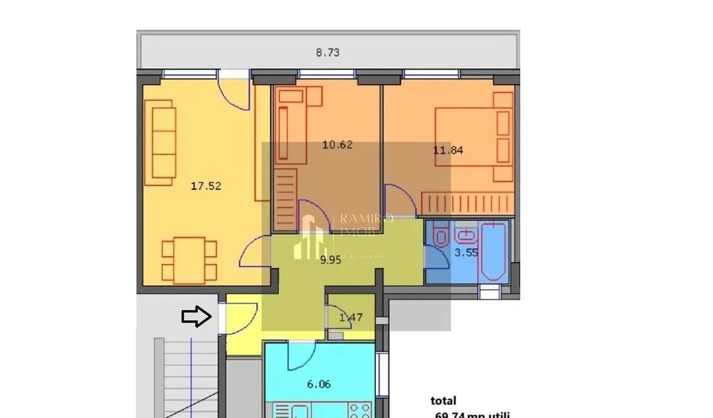 - suprafata utila -70 mp, decomandat, 3 camere, balcon mare inchis