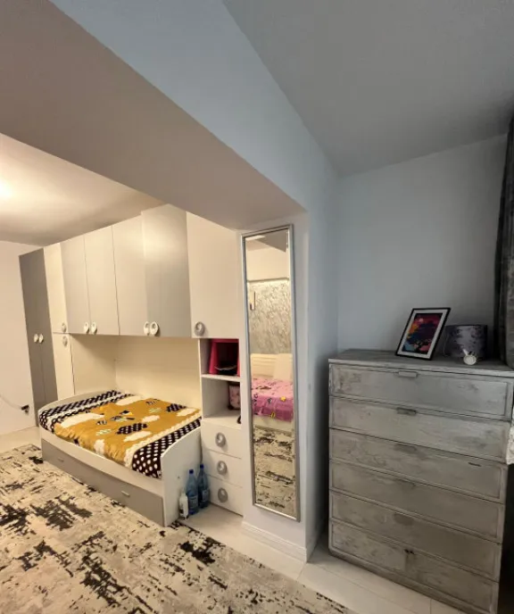 Proprietatea este renovată și se vinde complet mobilată și utilată, fiind dotată cu centrală termică proprie, ceea ce asigură eficiență și control asupra consumului. Compartimentarea este practică și eficienta: dormitoare spatioase,, bucătărie deschisa, doua bai functionale , hol generos.